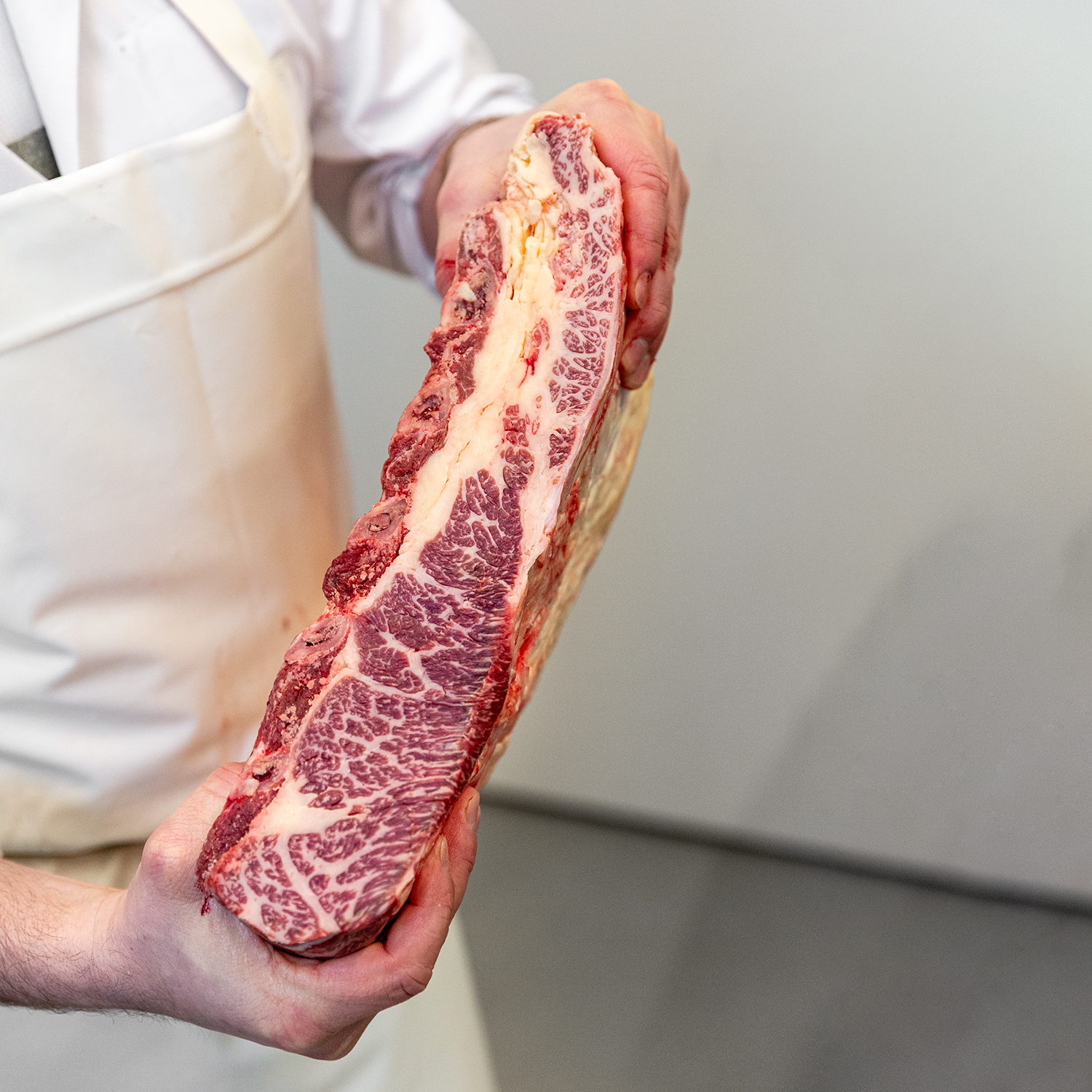Yes, beef has its own incredible ribs as well – and they truly deliver, especially when it comes to the generous layer of meat. In fact, the meat covering is significantly thicker than with traditional spare ribs. With our Wagyu short ribs there is an additional highlight: the exceptional marbling of Wagyu beef.
