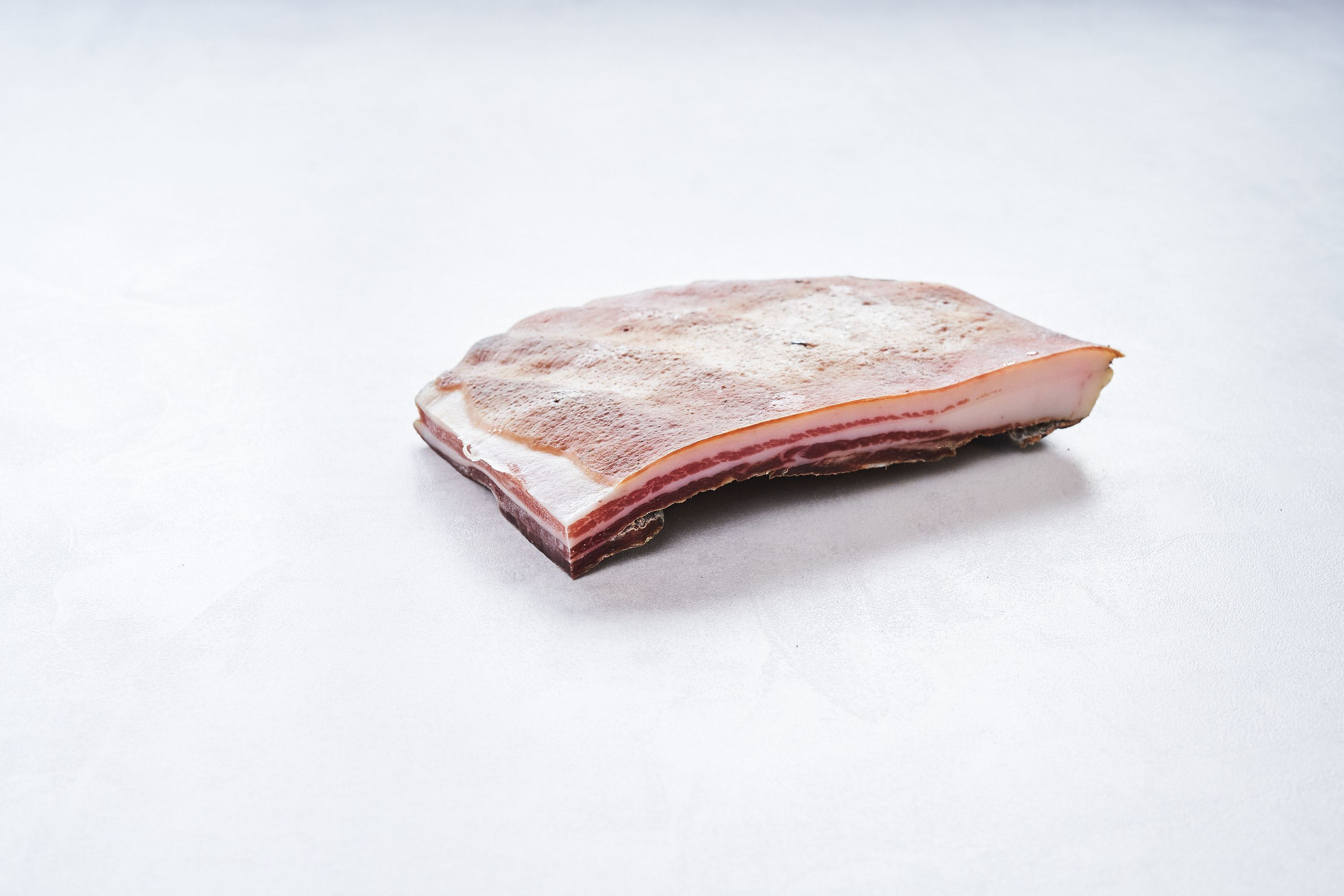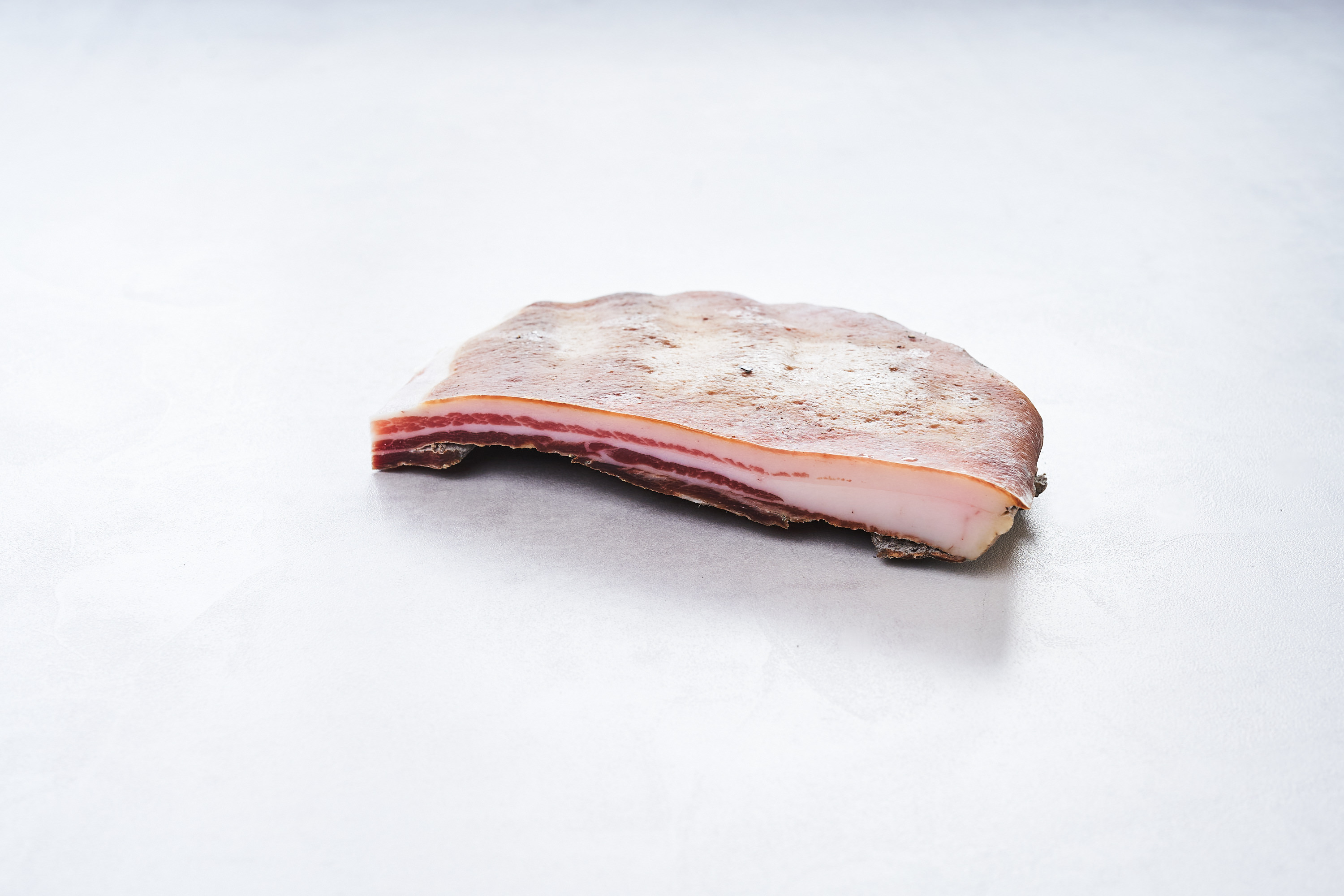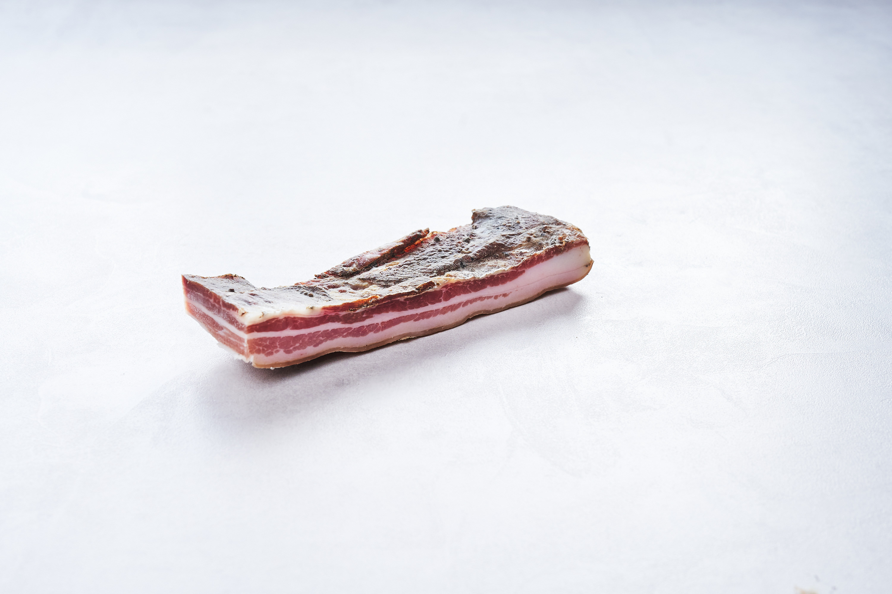 Genuine pancetta is a speciality that plays a particularly important role in Alpine cuisine. During production, the belly is first salted and then seasoned. It is then cold-smoked over beechwood for several weeks. To give it its very special, smoky flavour, the pancetta is then matured in beech ash.